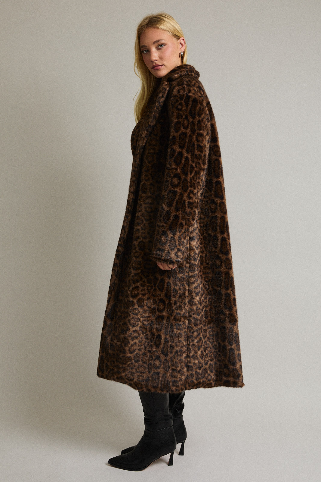 Wrap yourself in effortless sophistication with our Wildside Faux Fur Coat. This statement piece exudes confidence and timeless glamour with its rich, faux-fur texture and bold leopard print. Designed for the modern muse, it features a longline silhouette, notched lapel collar, and soft inner lining for all-day comfort and warmth. Whether you’re dressing up for a night out or elevating your everyday style, this coat delivers wild elegance with every step.